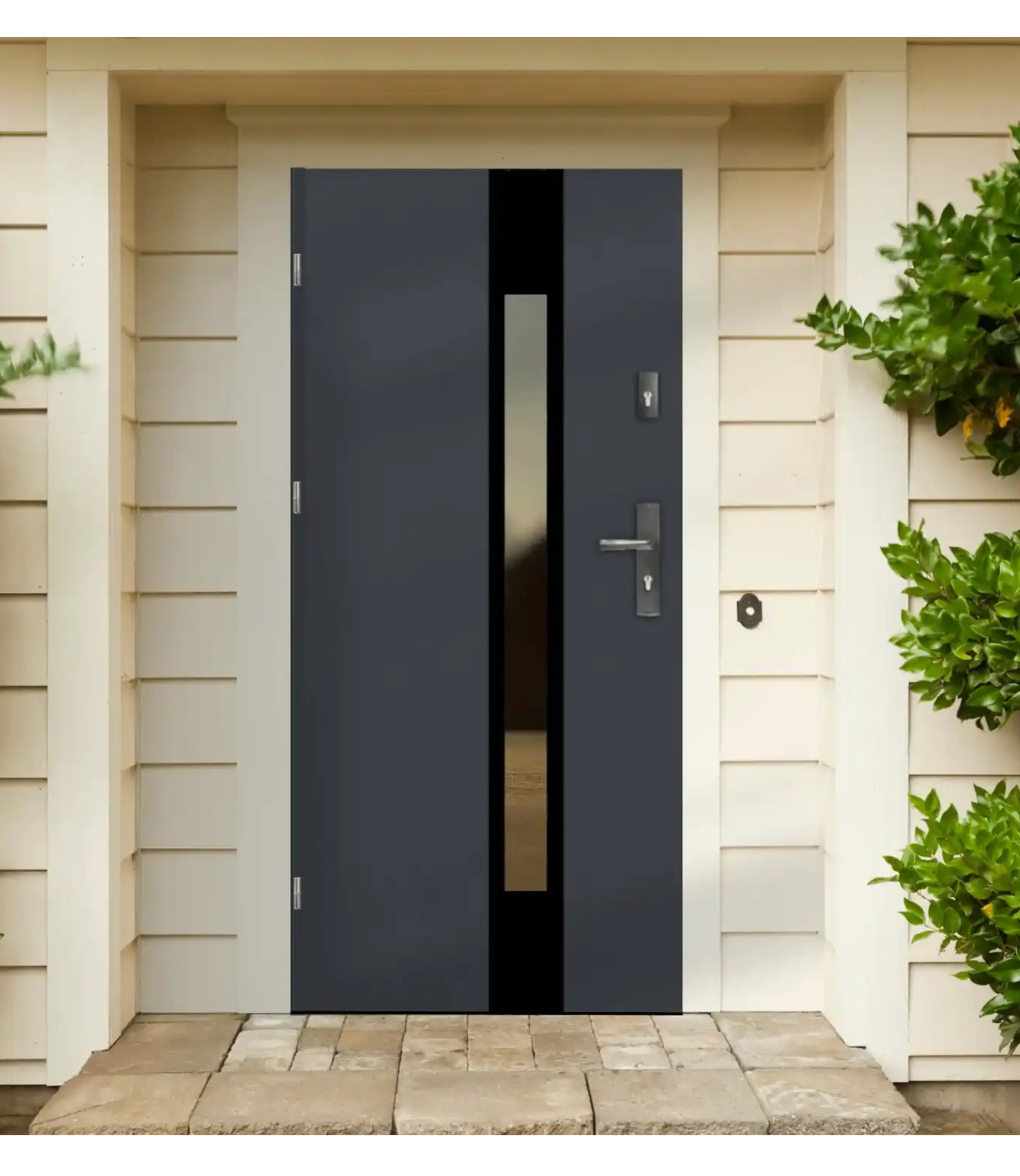 Nowoczesne drzwi zewnętrzne ocieplane o grubości 68 mm produkowane w Polsce. Grubość skrzydła oraz jego konstrukcja pozwoliła na osiągnięcie satysfakcjonującego współczynnika izolacyjności akustycznej i cieplnej.