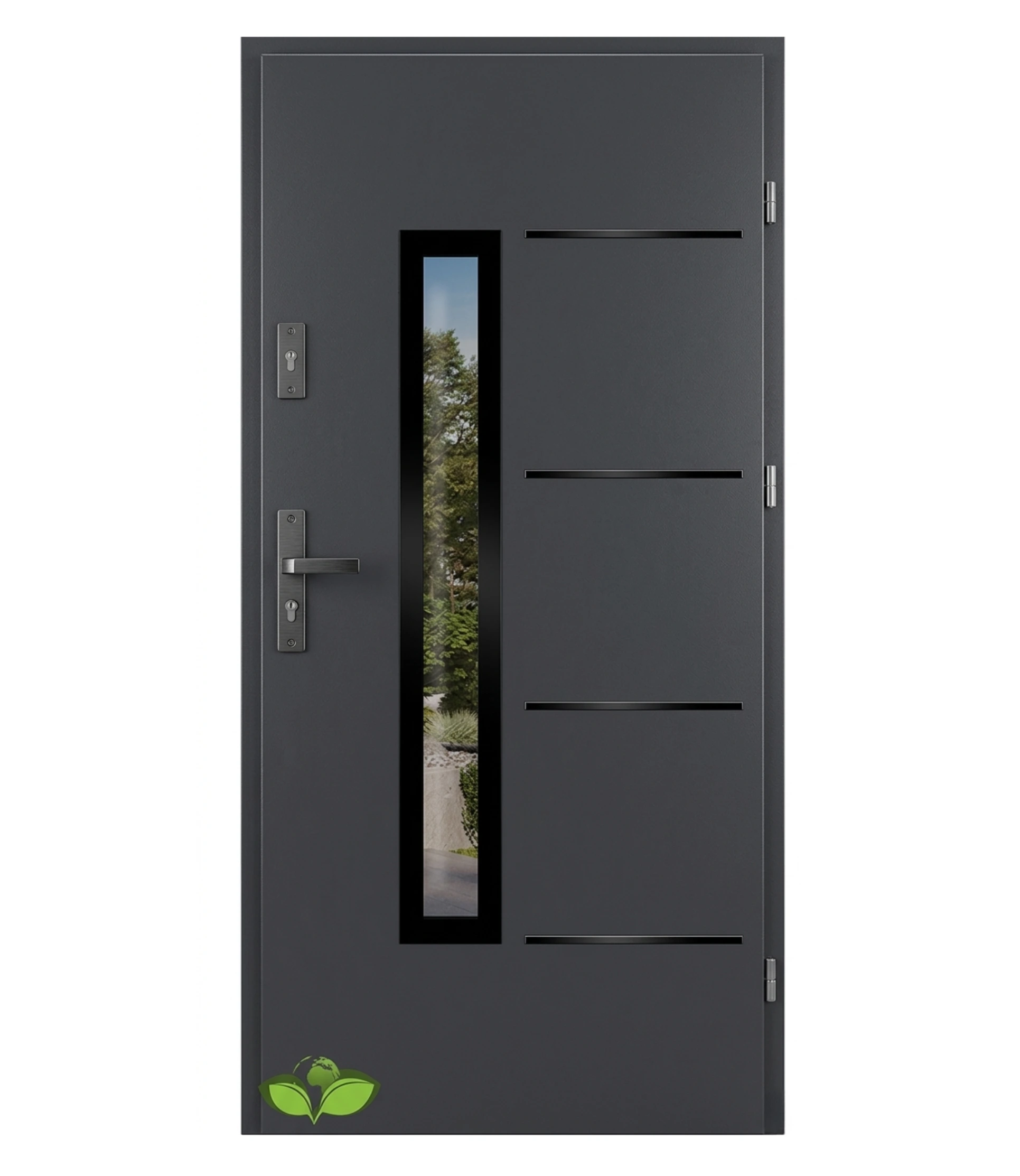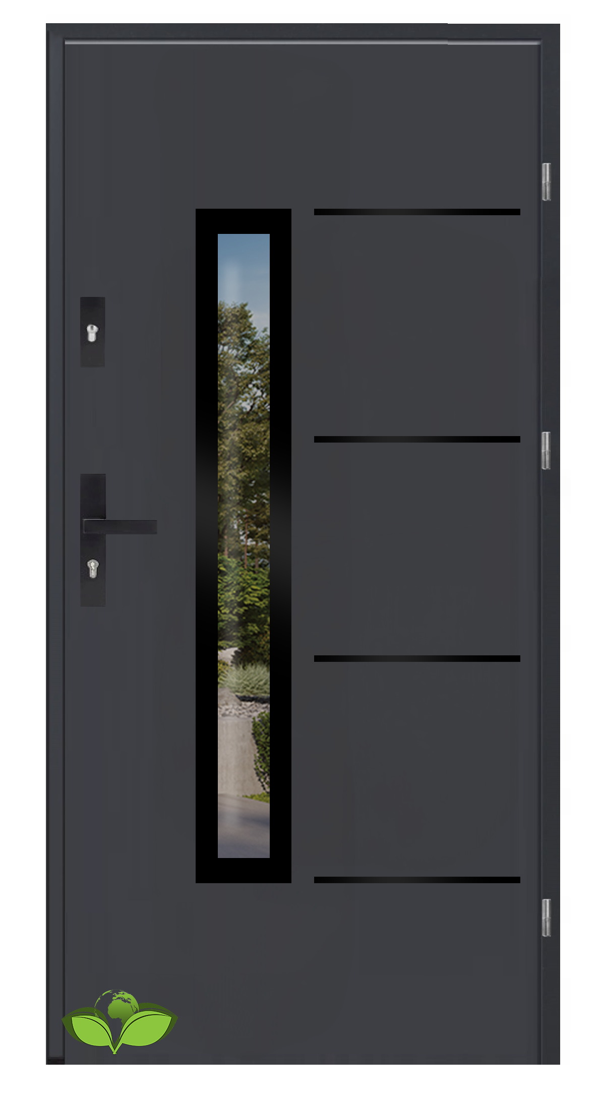 Nowoczesne drzwi zewnętrzne ocieplane o grubości 68 mm produkowane w Polsce. Grubość skrzydła oraz jego konstrukcja pozwoliła na osiągnięcie satysfakcjonującego współczynnika izolacyjności akustycznej i cieplnej.