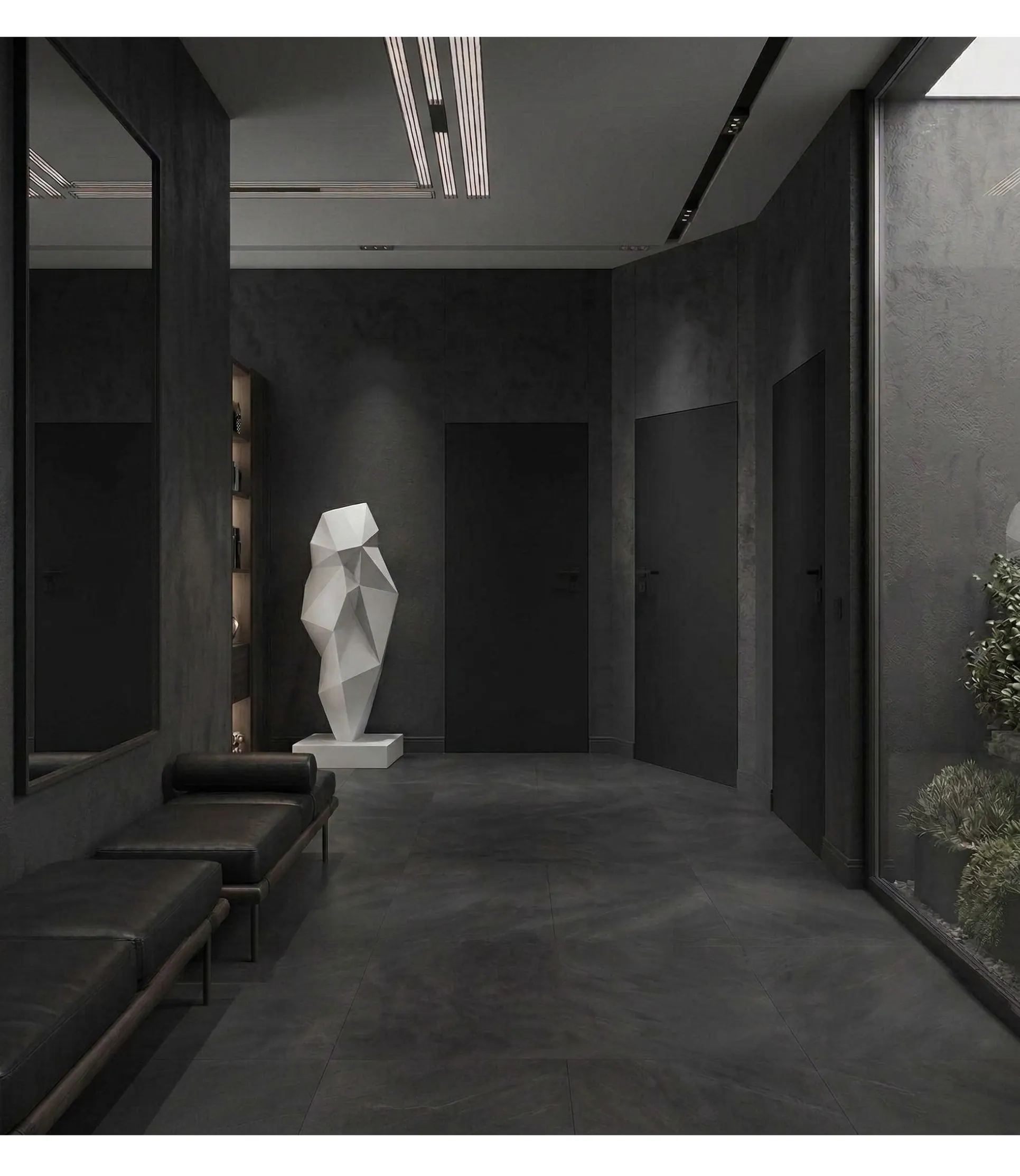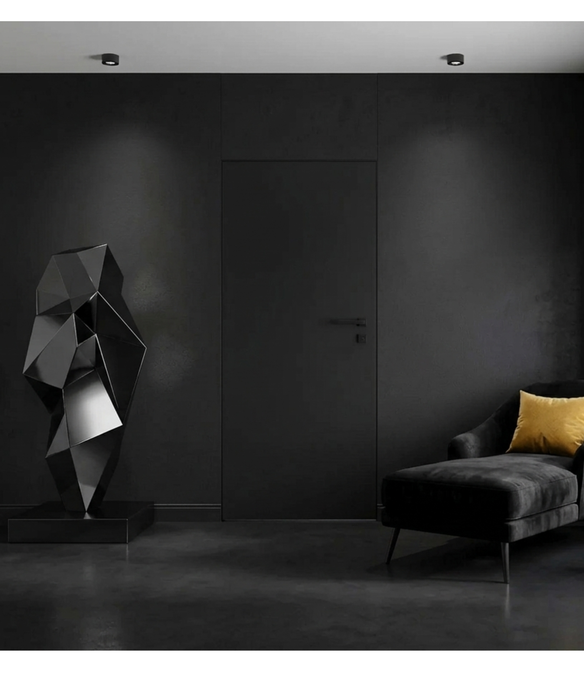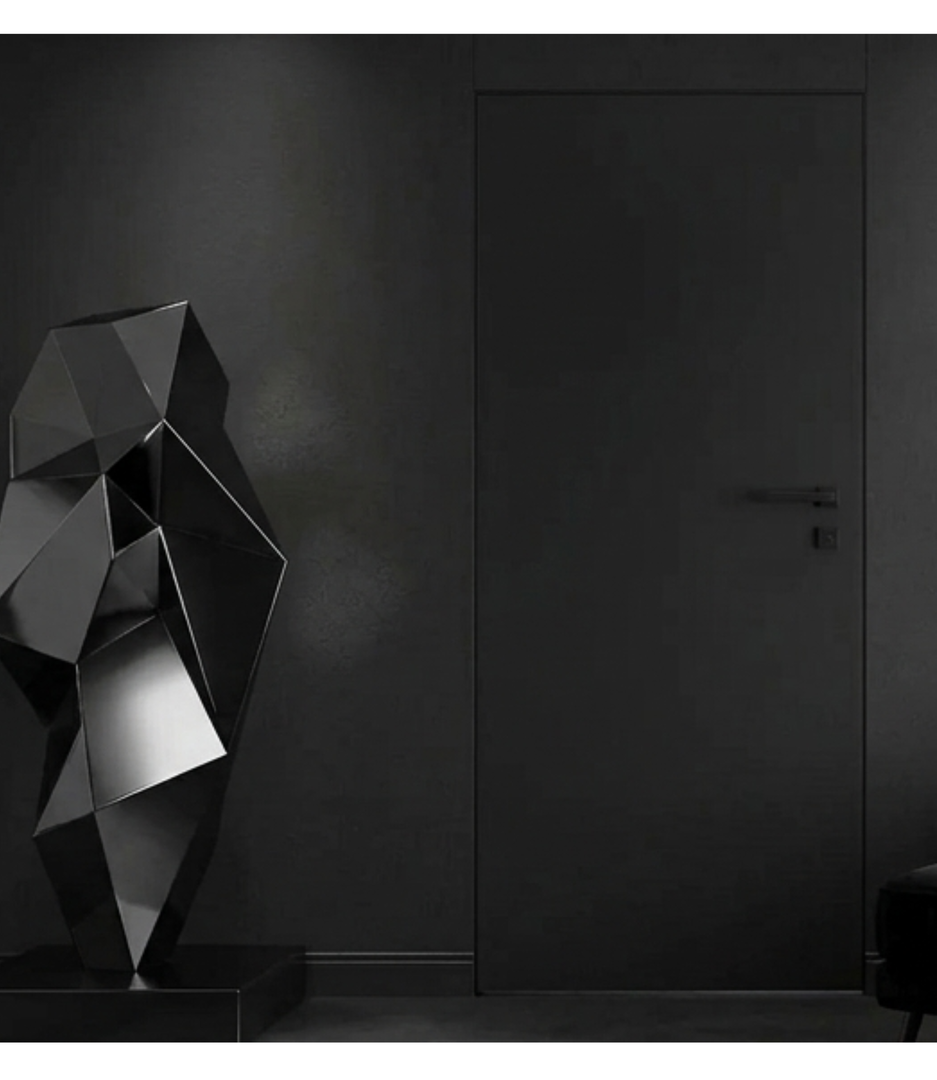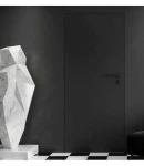 Produkt jest w komplecie z niewidoczną ościeżnicą, w całości zabudowaną w ścianie gipsowo-kartonowej, a zamontowane w niej skrzydło drzwiowe licuje się ze ścianą stanowiąc jej element. Specjalnie zaprojektowane dla ościeżnicy ukrytej drzwi o wysokości 2020mm, wykończone są okleiną finish kolor czarny mat.