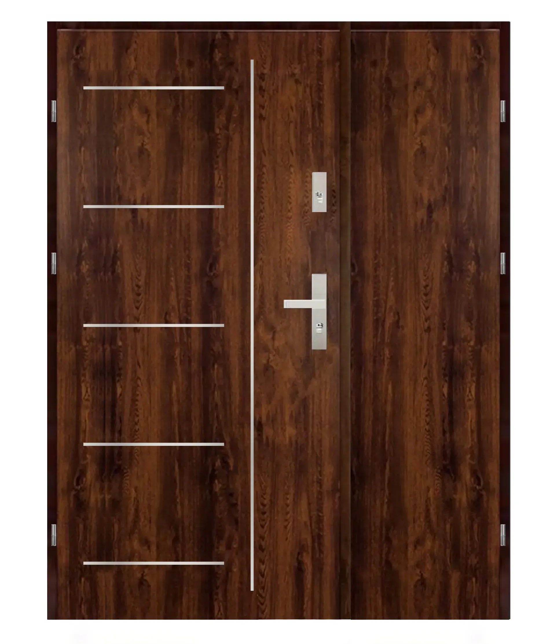 Eleganckie wejście w wielkim stylu – drzwi zewnętrzne z dwoma otwieralnymi skrzydłami.