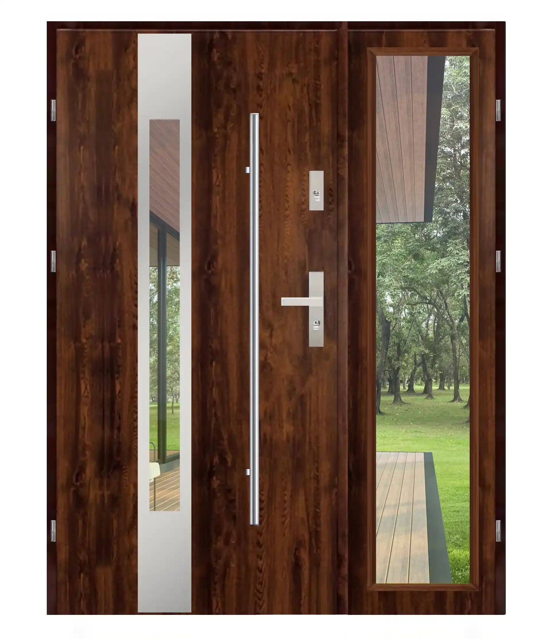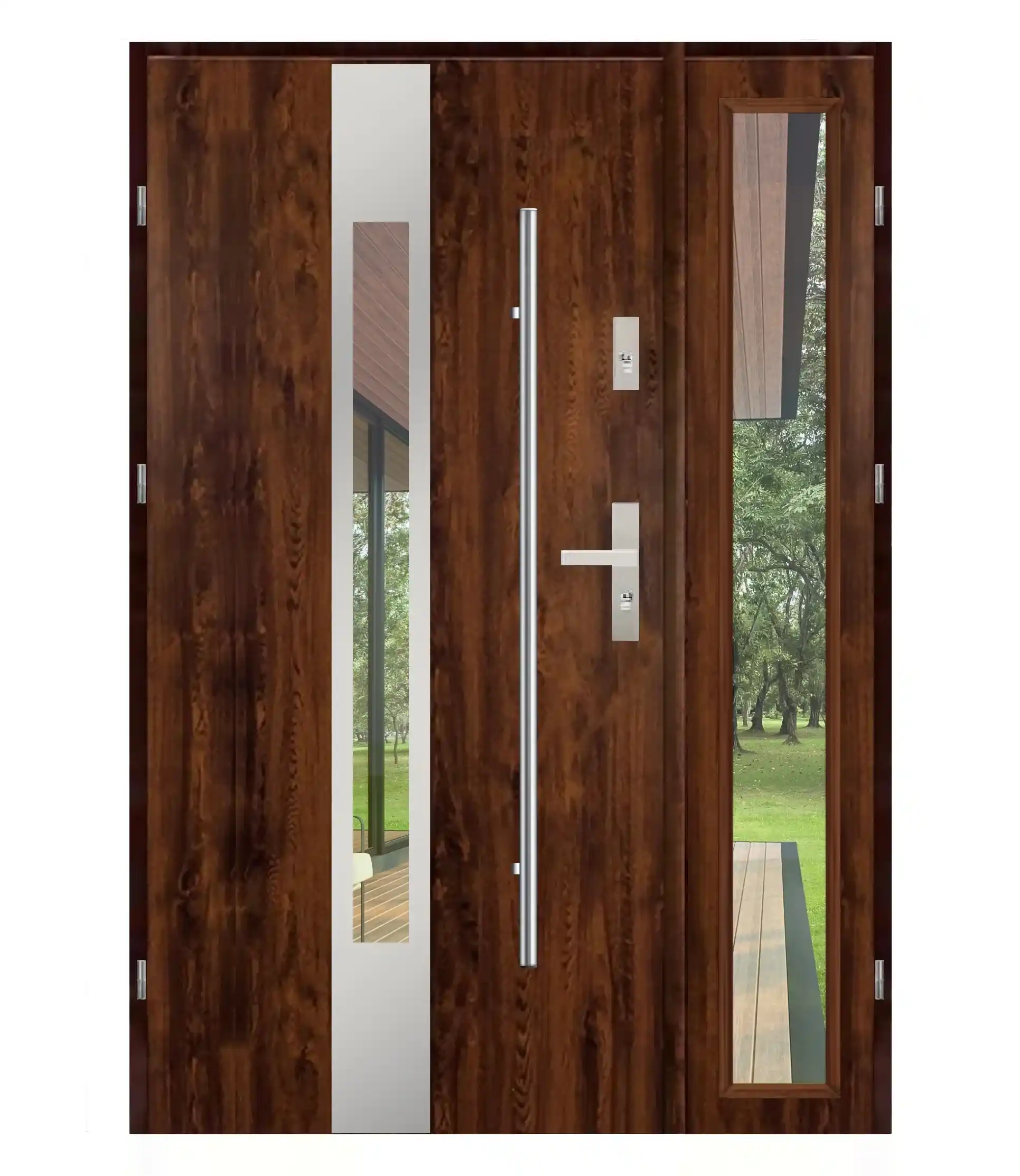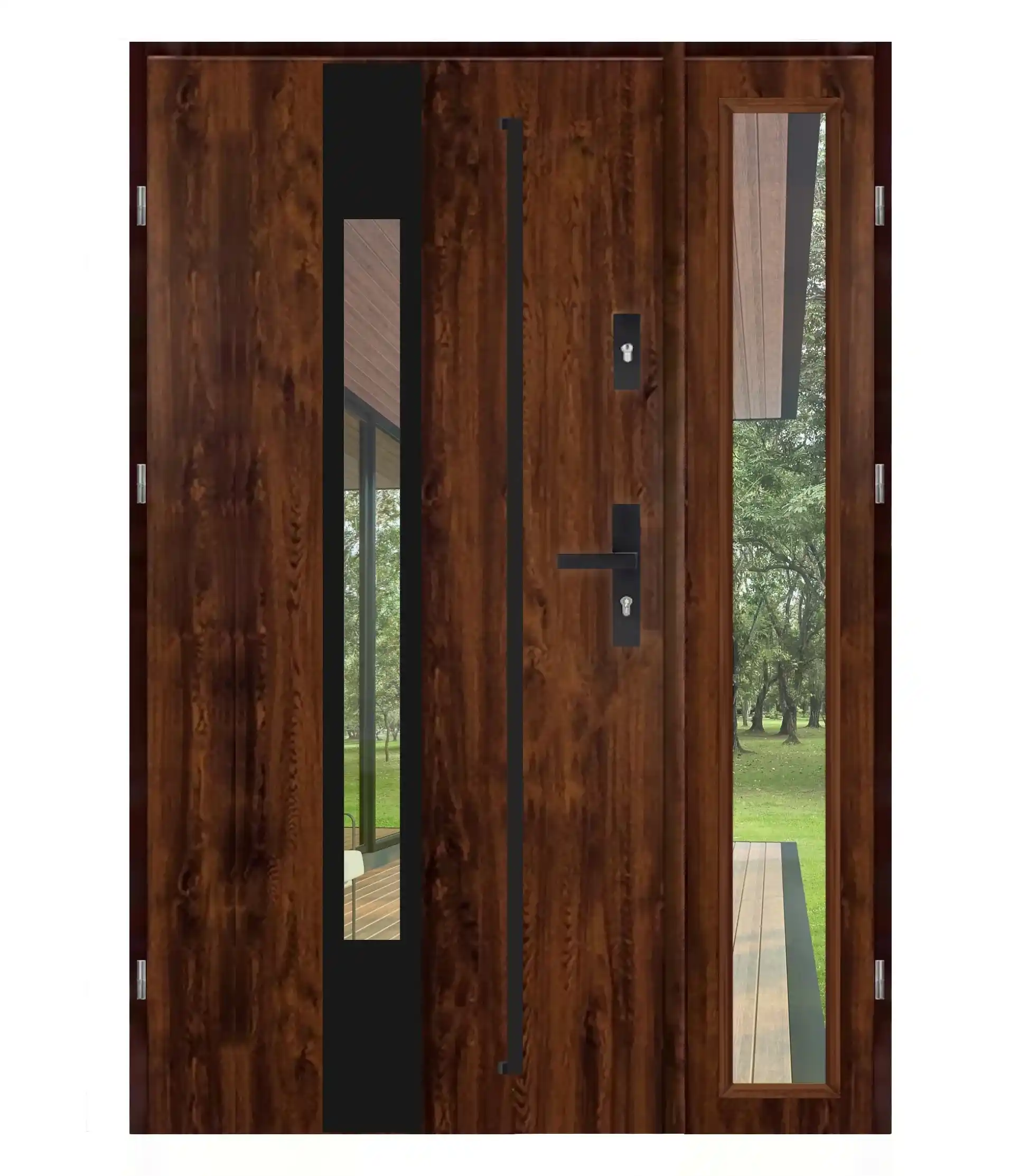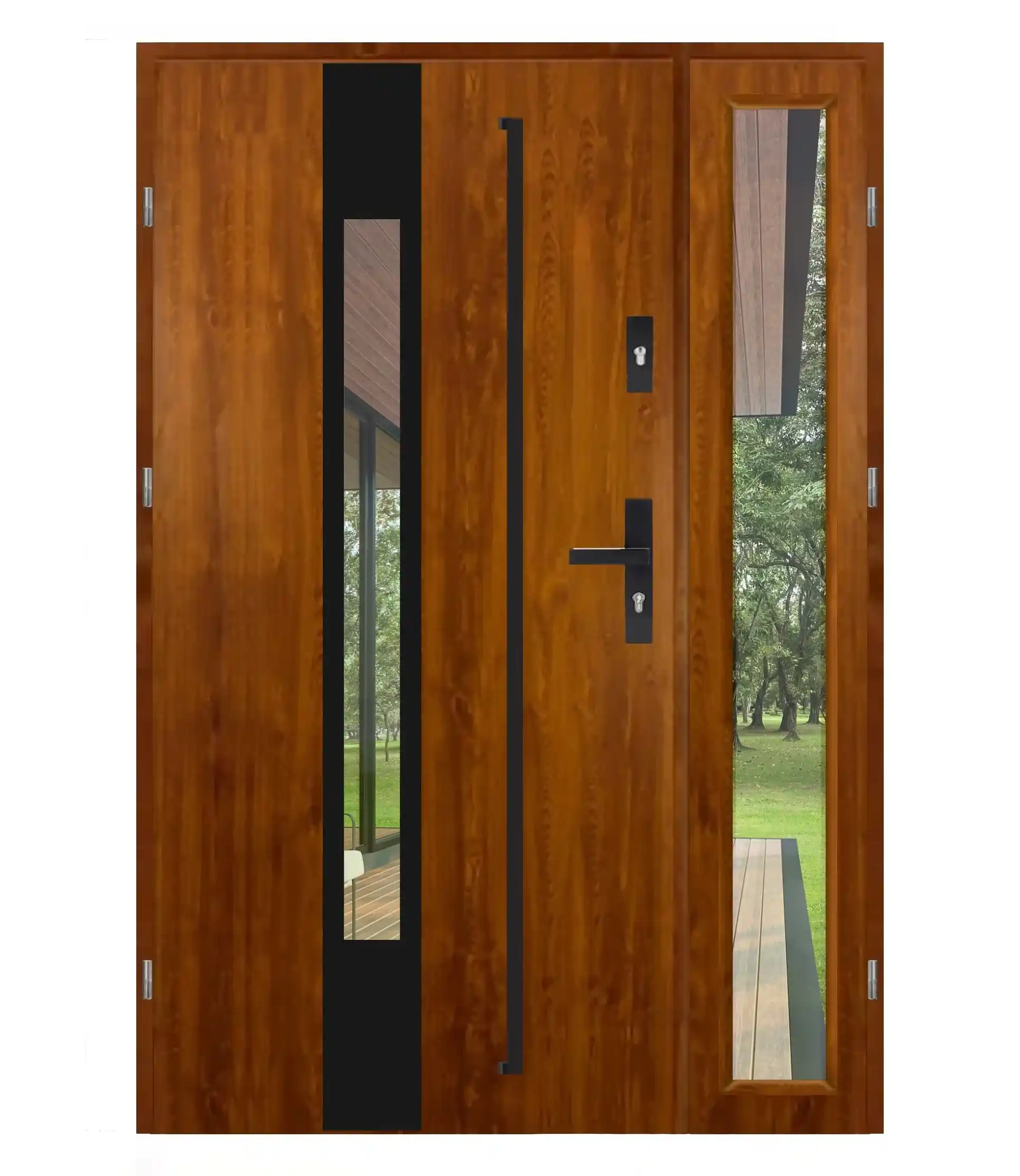 Wygląd elementów takich jak proporcje skrzydeł, rodzaj szyb, szerokość naświetli (przeszkleń), czy detale wykończenia może się różnić w zależności od wybranego modelu oraz konfiguracji (np. wymiar, typ drzwi, wersja techniczna).