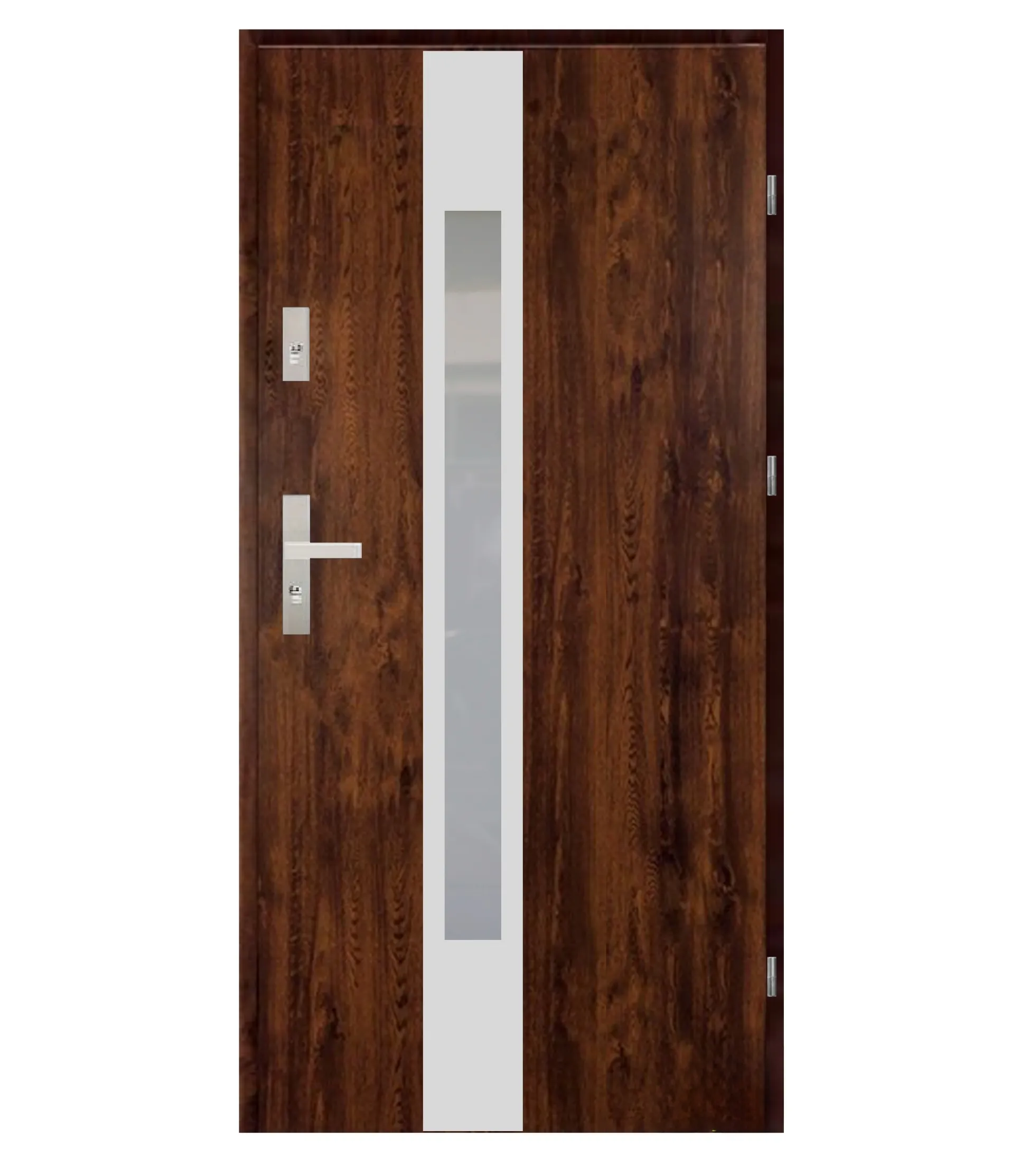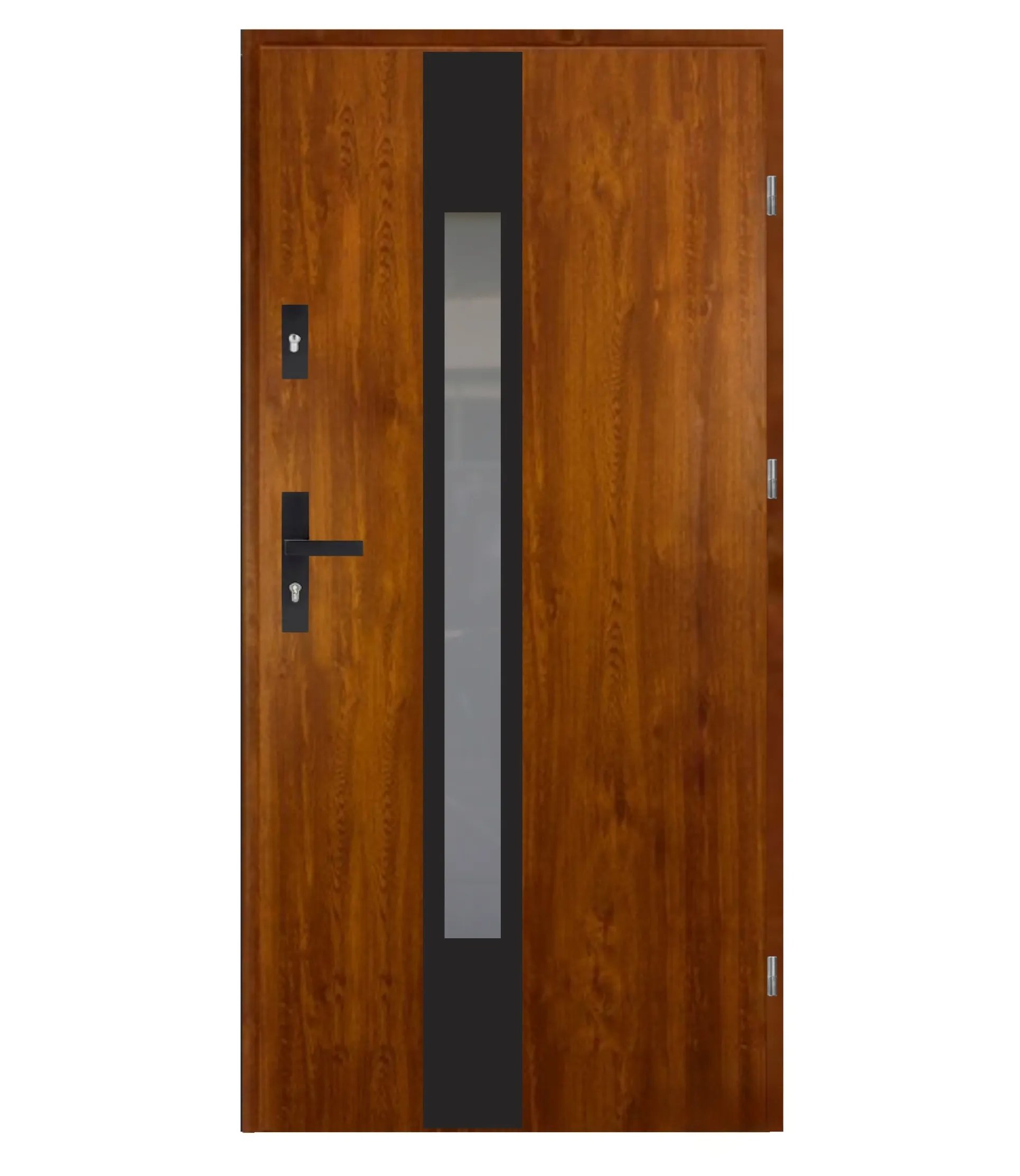 - Izolacja termiczna – drzwi wyposażone w rdzeń z pianki poliuretanowej, który zapobiega utracie ciepła i zwiększa komfort użytkowania.