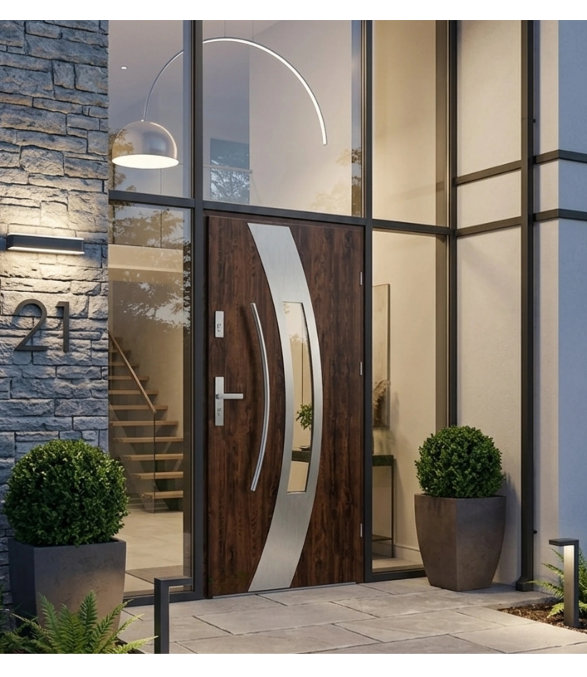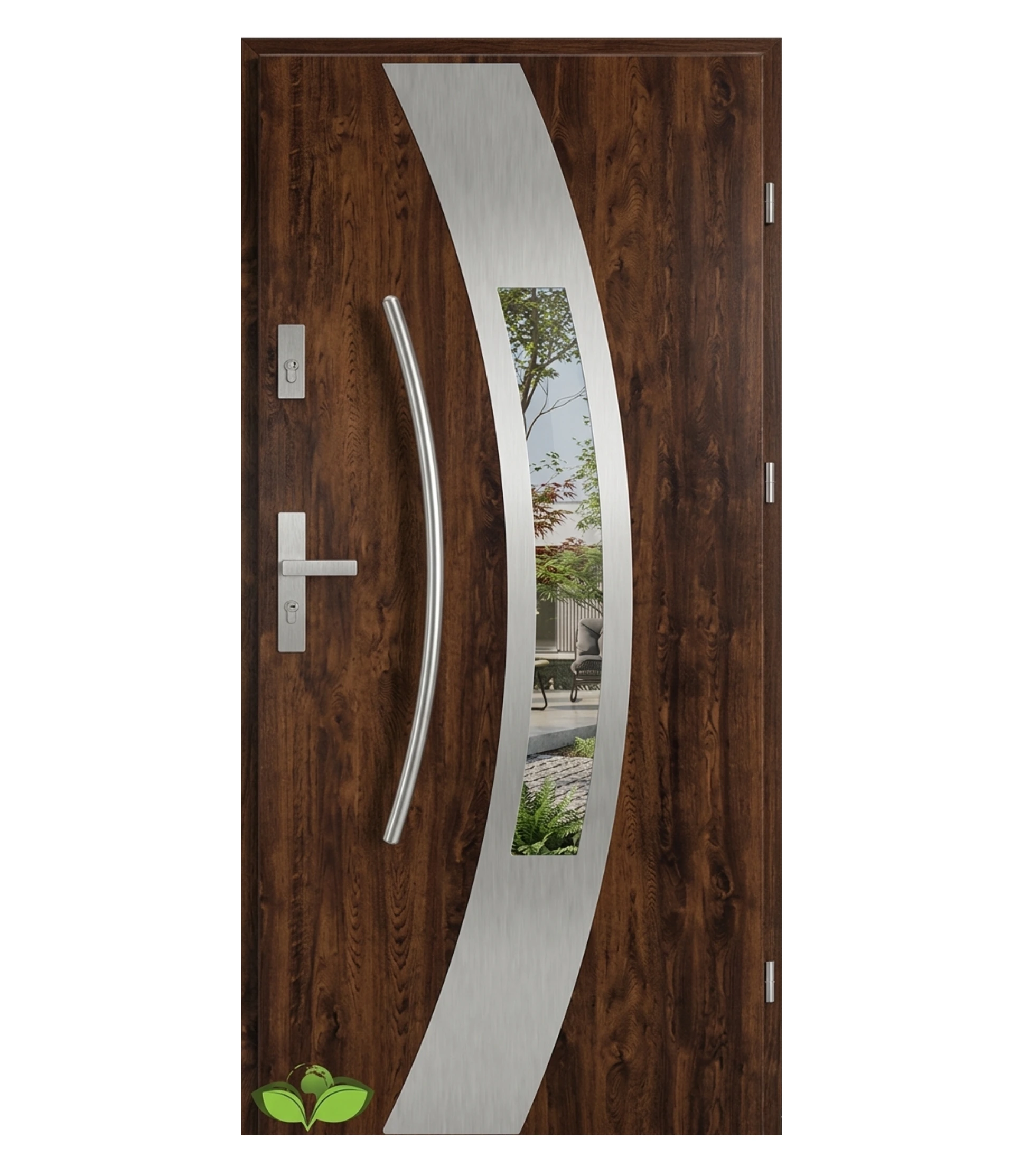 Nowoczesne drzwi zewnętrzne ocieplane o grubości 68 mm produkowane w Polsce. Grubość skrzydła oraz jego konstrukcja pozwoliła na osiągnięcie satysfakcjonującego współczynnika izolacyjności akustycznej i cieplnej.