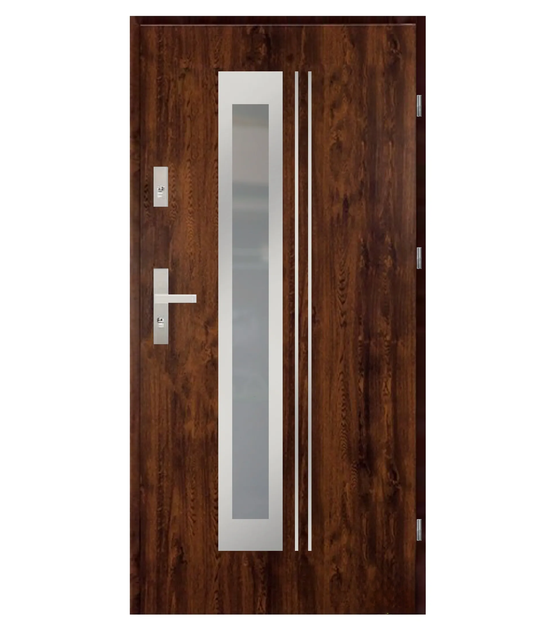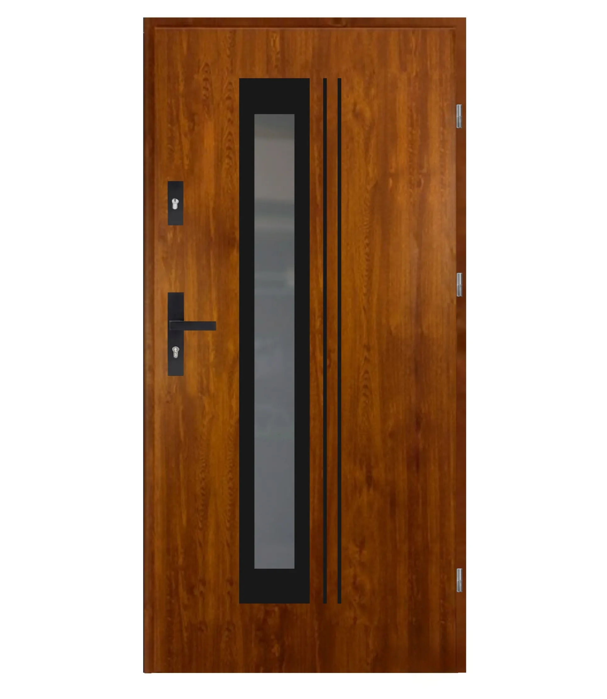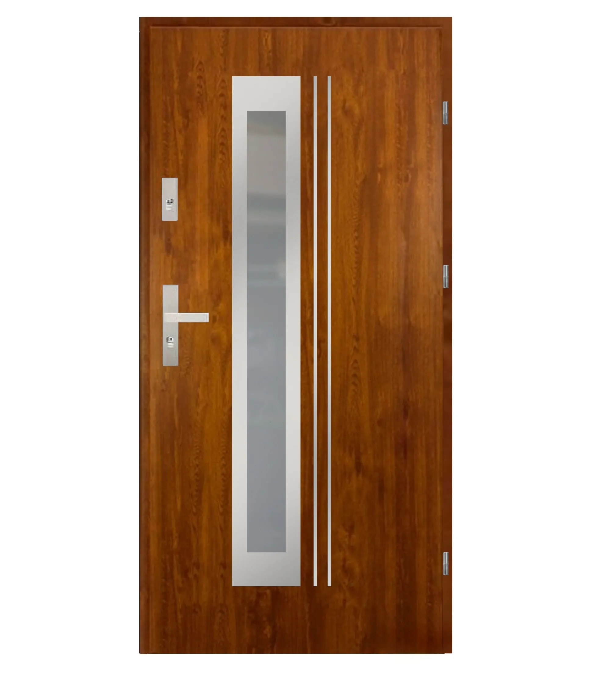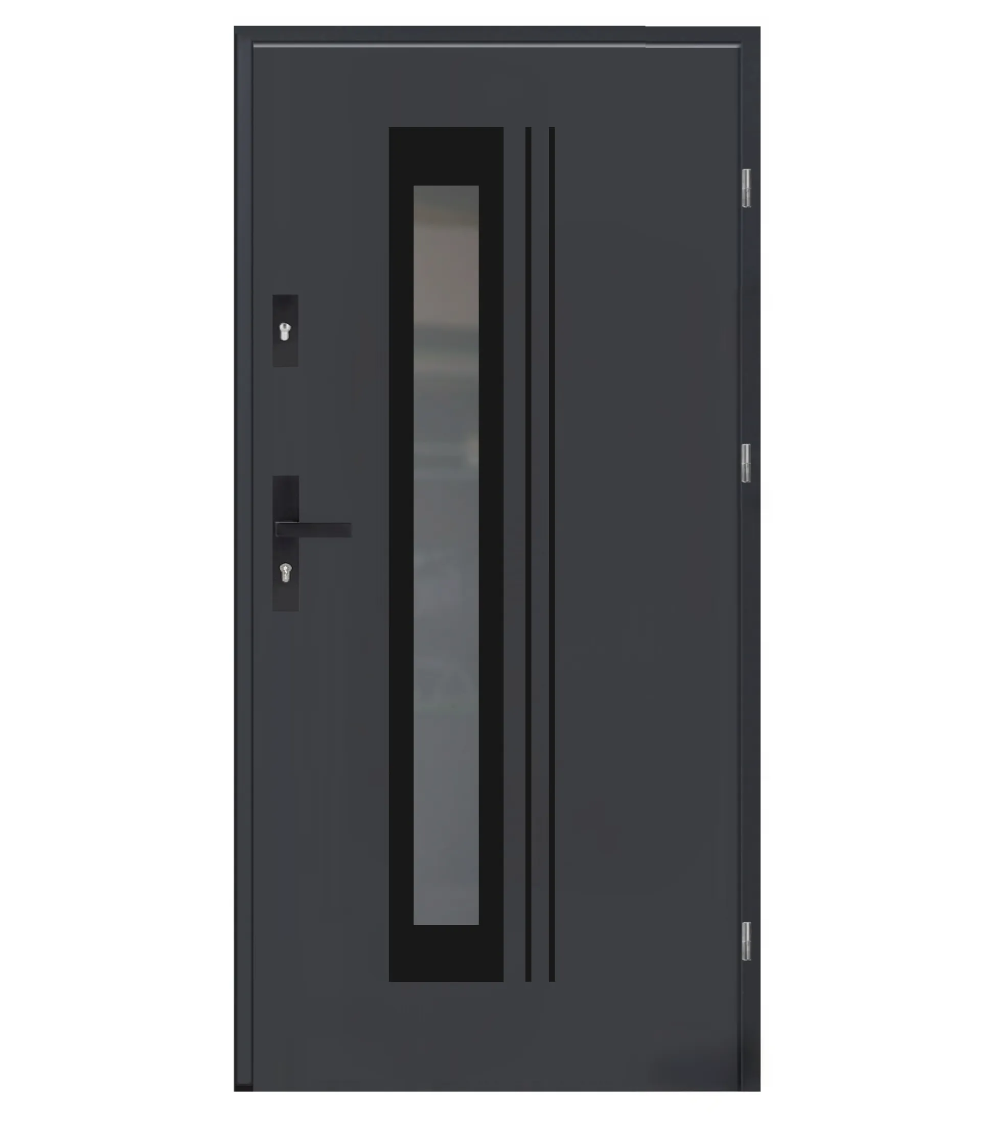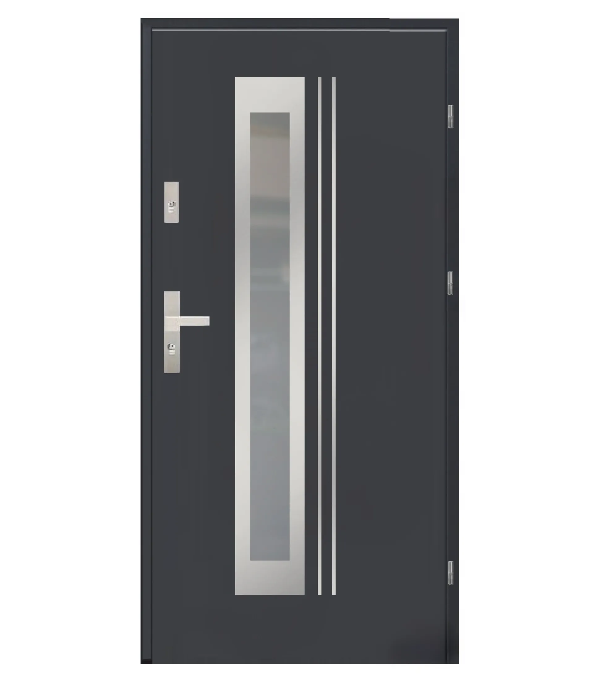 Nowoczesne drzwi zewnętrzne produkowane w Polsce. Grubość skrzydła oraz jego wypełnienie spienionym styropianem tworzy doskonałą izolacyjność akustyczną oraz cieplną. Drzwi są wykonane z blachy przez co bez problemu znoszą różne warunki pogodowe. Mogą być stosowane w domach jednorodzinnych jak i w budynkach użyteczności publicznej.