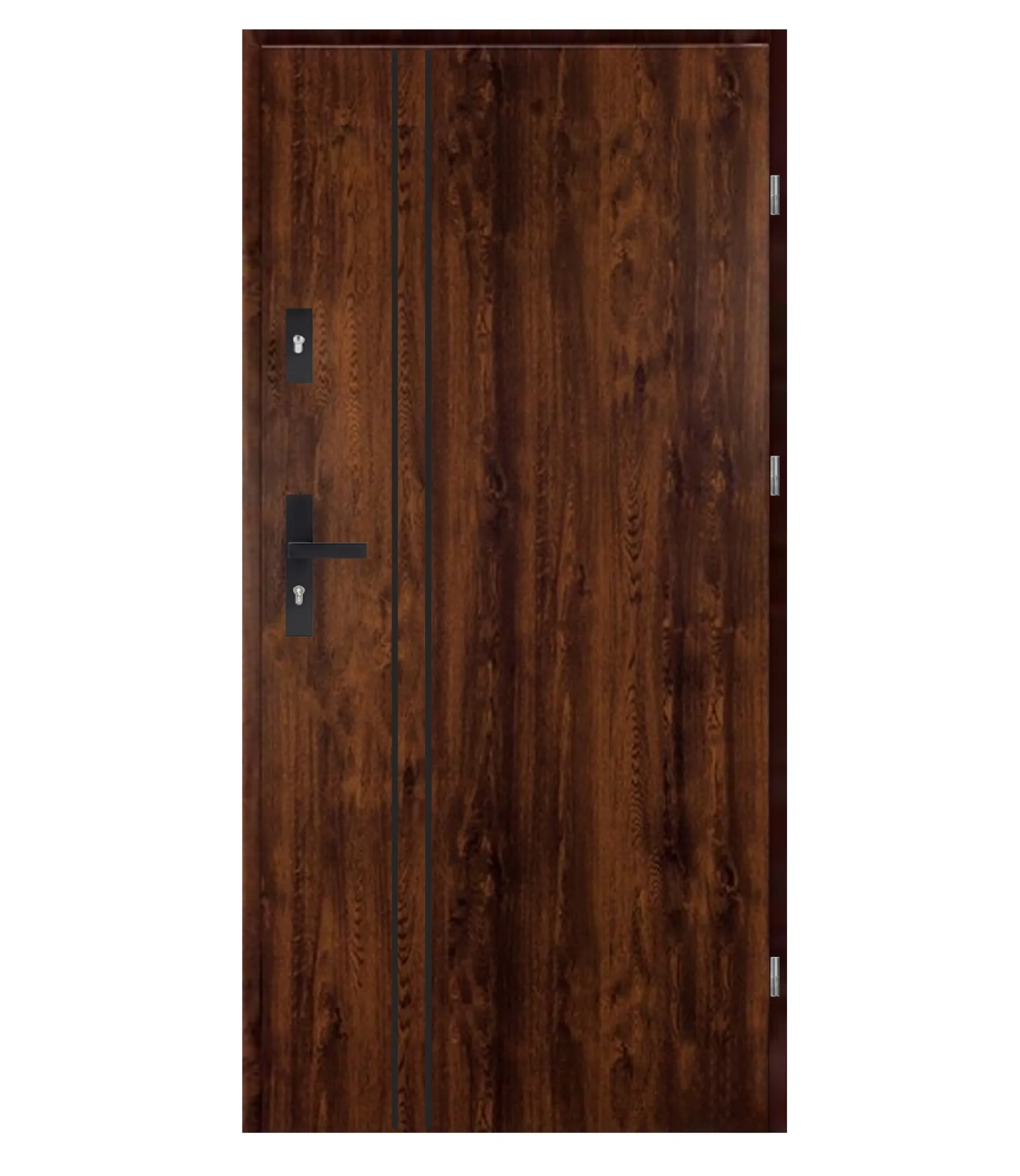 - Izolacja termiczna – drzwi wyposażone w rdzeń z pianki poliuretanowej, który zapobiega utracie ciepła i zwiększa komfort użytkowania.