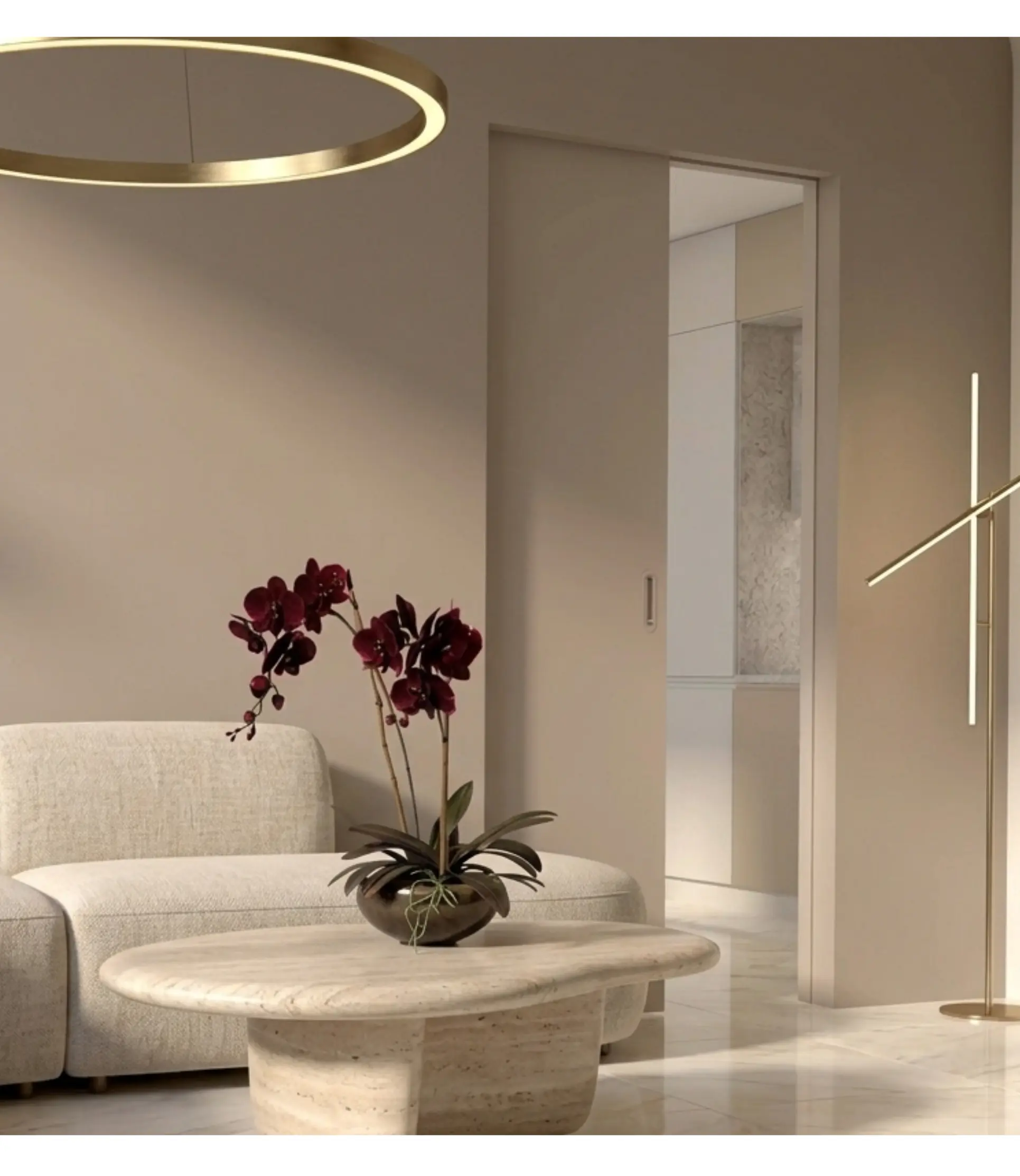 Ciekawym, minimalistycznym rozwiązaniem dla nowoczesnych wnętrz są drzwi przesuwne w ścianie. I